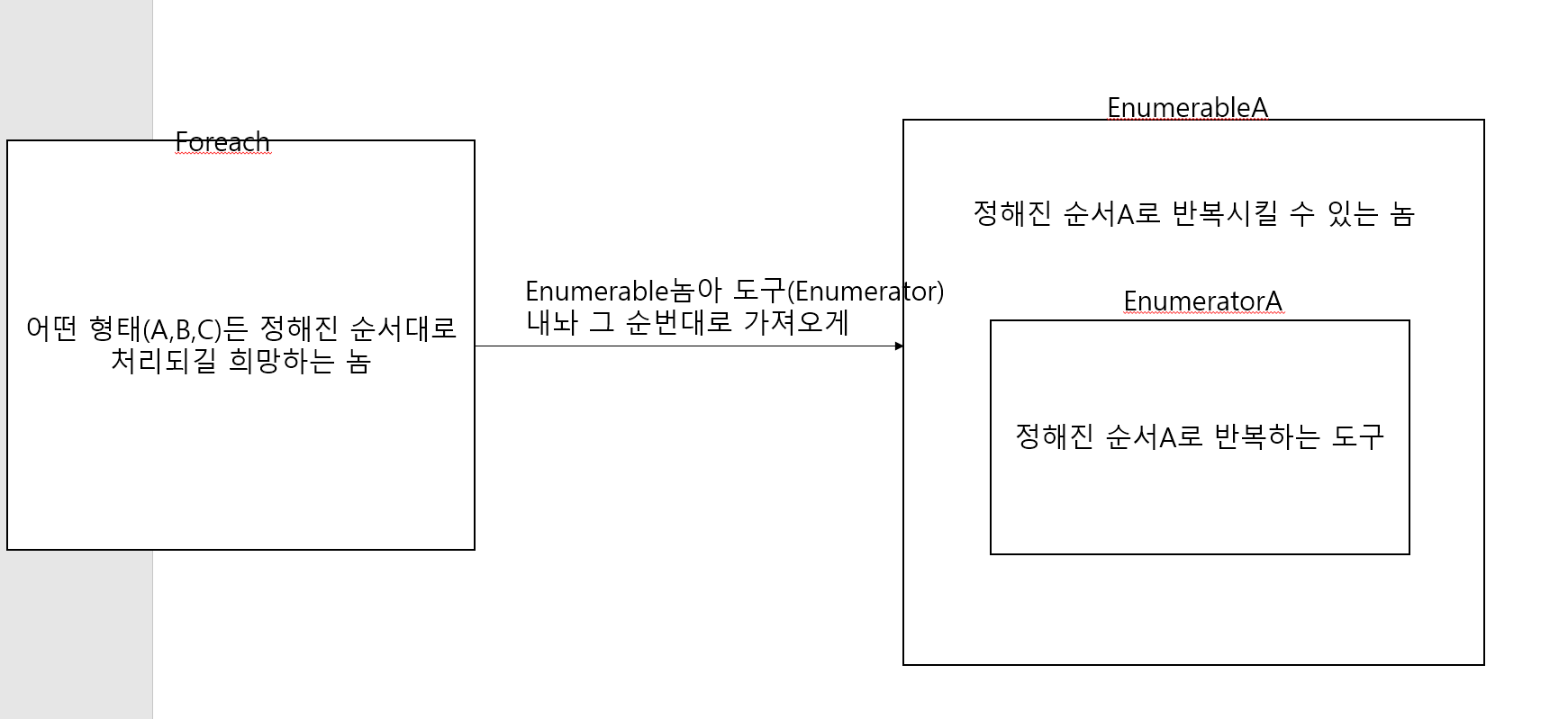 foreach(기능을 사용하는 애)가 알아야 하는 건 안에 구현된 내용이 아니라 사용할 수 있는 형태!